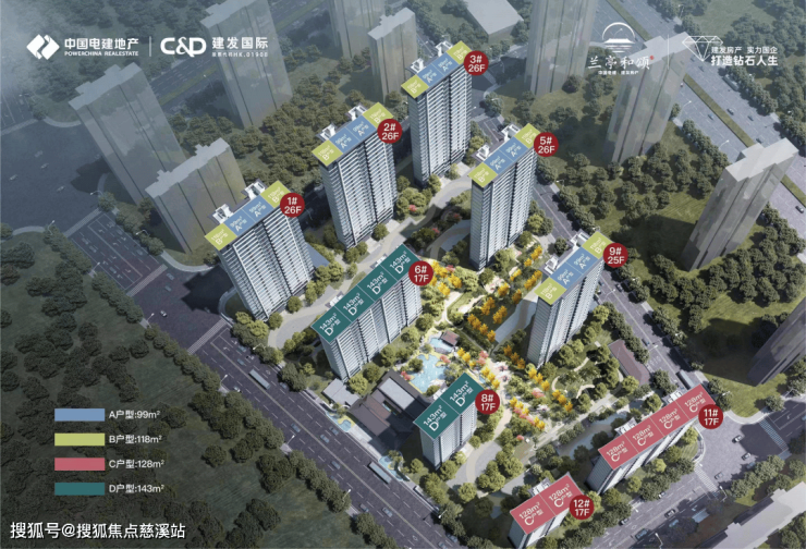 项目共打造9栋17F小高层、26F瞰景高层产品,户型设计上打造建面约99㎡、118㎡、128㎡、143㎡四种户型,全龄化户型设计,定位高端改善客群。