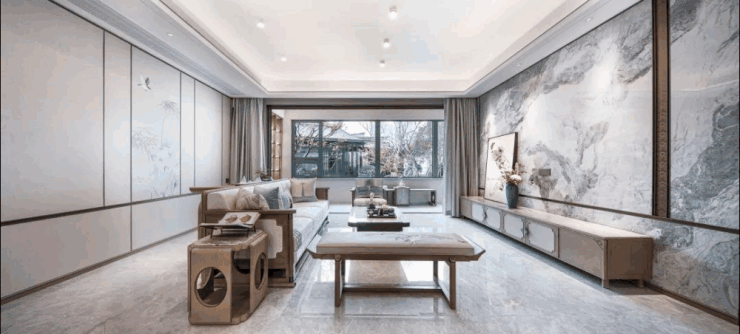目前,兰亭和颂对外公开的两套新中式概念美学展示样板间,其户型建面分别约为118、143㎡,格局都颇为方正,动静分区明显,同时尺度感也很出色。