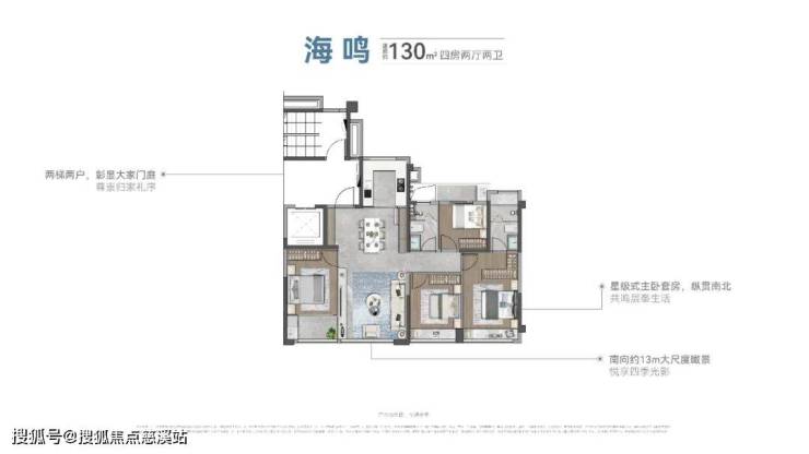 至臻奢宅,当下改善优选。国贸海上鸣樾堪称岛外圈层超豪的改善平层奢宅,约130-143平4房2卫、168-180-193平4房3卫,几乎起步门槛就是500万起,容积率约2.4,车户比约1.33:1,23-25层全2梯2户板楼设计!