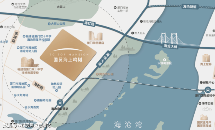 ——项目背靠大屏山郊野公园,前临海沧湾,呈“负阴抱阳、藏风蓄气”之势。山体作“玄武靠”,象征根基稳固;面向开阔海域,水主财源。