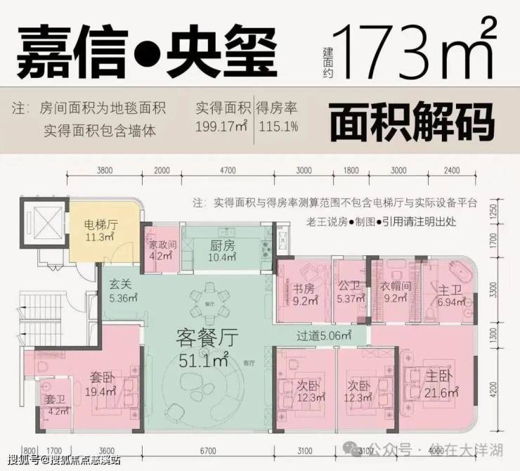 173平方户型,小区最大户型,占居小区中心位置,户型大面宽,日照非常充足,实得面积近200平方,绝对大平层既视感!