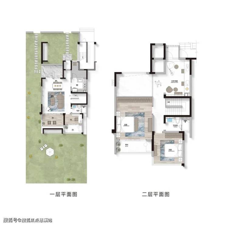 套均边户,首层前后庭院设计实现270°围合景观,前后庭院与侧院相连,巧妙扩展户外空间,为居者提供更加宽敞的私人花园。