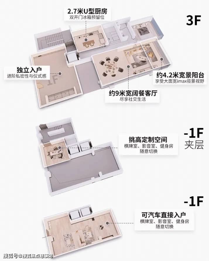 超高拓展空间,包括屋顶露台和挑高地下室,这些额外空间不仅增加居住的舒适度,也为家庭提供更多的功能性和娱乐性选择。