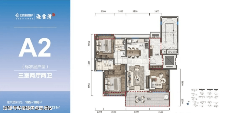 产品类型:20栋8-10层一线海景墅质洋房,主力户型为105-132㎡,涵盖三房、四房设计,部分户型带花园或露台。