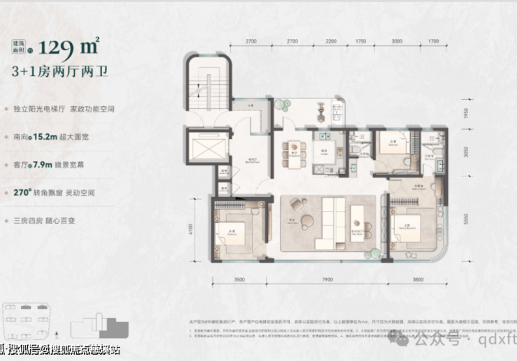 约129:143:160㎡≈3:6:1,另有一层带院及顶层复式产品