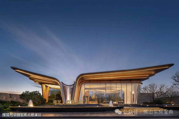 钻感天慕立面,大面积玻璃幕墙搭配45°斜面香槟金铝板,南向窗墙比超80%,实现环幕世景观视野!