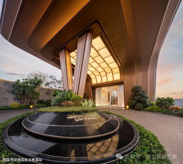 五星级酒店环岛落客区——上海宝格丽酒店同款无雨环岛落客区,50m长弧形爱马仕灰石材景墙,为业主的归家增添奢华的仪式感。