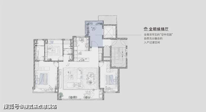 每一个南京人,骨子里都想拥有一个院子,而在豪宅云集的河西,能有一个空中花园,更是每个人的愿景,中海江湾境户户配有全明候梯厅,作为一个与自然充分融合的入户过渡空间,想象下,电梯门一打开,眼前是落地窗般的风景视野,或是一片翠色,或是一片蔚蓝,宛如一幅唯美的自然画卷……绝了!全明电梯明厅作为一个充满情景化的空间,恰好能够成为一个极具仪式感的入户花园,近乎满足大平层对于“空中花园”的需求。而近一梯一户的私享入户,避开嘈杂的环境,让生活更具安全性与私密性。