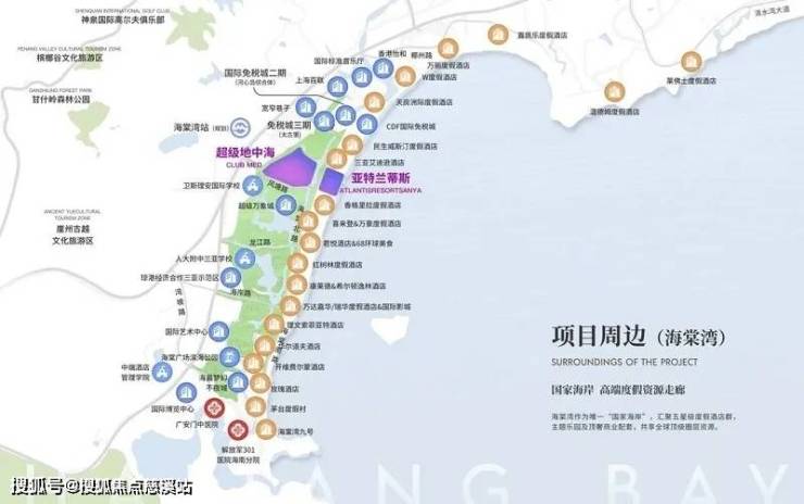 三亚,作为中国唯一的热带海洋岛屿,是全球北纬 18° 滨海旅游胜地之一。而海棠湾更是高端旅居的首选之地,这里汇聚了众多顶级度假资源。全球五星级度假酒店群中已有 20 余家开业运营;世界级主题乐园集群包括亚特兰蒂斯主题乐园、HELLO KITTY 主题乐园、海昌梦幻不夜城等;醇熟商业配套有 CDF 免税店、海棠湾 68 美食广场,以及在建的万象城、太古里、SKP 商场、宽窄巷子等购物中心;国家级重点名校如人大附中三亚学校、卫斯理安国际学校、中瑞酒店管理学院等;文化生态休闲配套包含 2 个高尔夫球场、游艇基地、国际艺术中心、水稻国家公园等;优质医疗机构有解放军 301 医院海南分院、北大口腔医院、广安门中医院等;交通也十分便利,距离海岸线约 2 公里,距海南环岛高速路约 4 公里,未来海棠湾高铁站建成后出行将更加便捷。