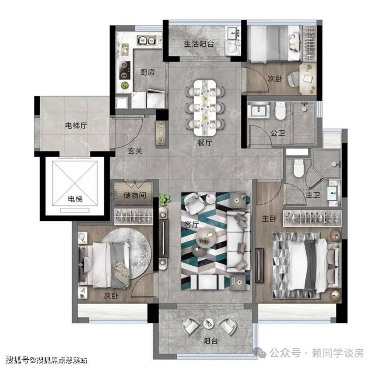 ③楼栋单梯腿,南向多面宽,采光通风最大化。
