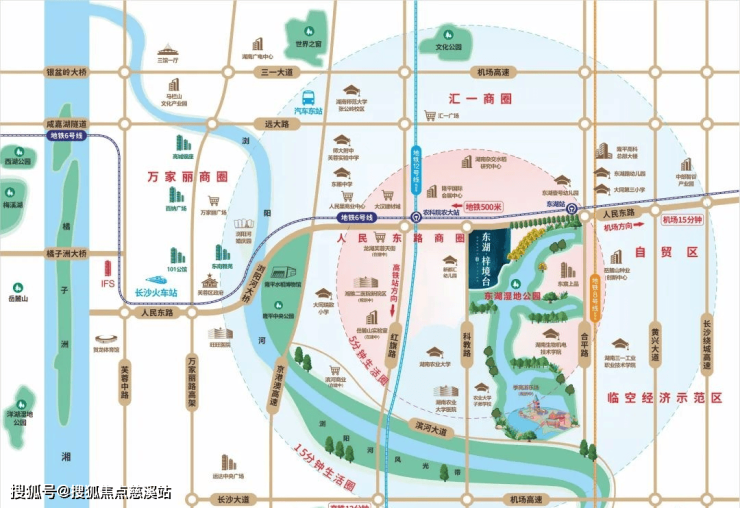 长沙发展的热点板块是滨江新城、洋湖、梅溪湖、东湖板块,本项目位于东湖板块核心。片区是芙蓉区政府“跨河东进”主发展阵地,也是隆平高科技园区核心。