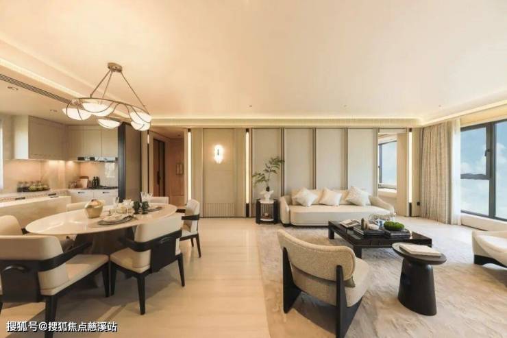 居住是一场生活艺术之旅,而归家的仪式感,是这场旅程的开篇序章。建面约165㎡洋房深谙奢适空间尺度彰显高阶仪派的真谛,以独立电梯厅+阔尺玄关的双境设计,将尺度与礼序完美融合。