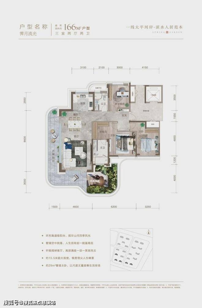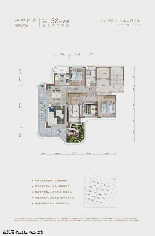 项目在空间布局上追求极致的舒适与实用。建面约115-190㎡的谧境山水大宅,不仅南北通透、全明格局,更配备了约6.2米的生态立体花园和连通270°观景的开敞式阳台,让居民在家中即可畅享阳光与清风,满足对诗与远方的无限想象。同时,项目还设计了约4.2米的全龄主题架空层,为业主营造丰富的生活场景新体验。