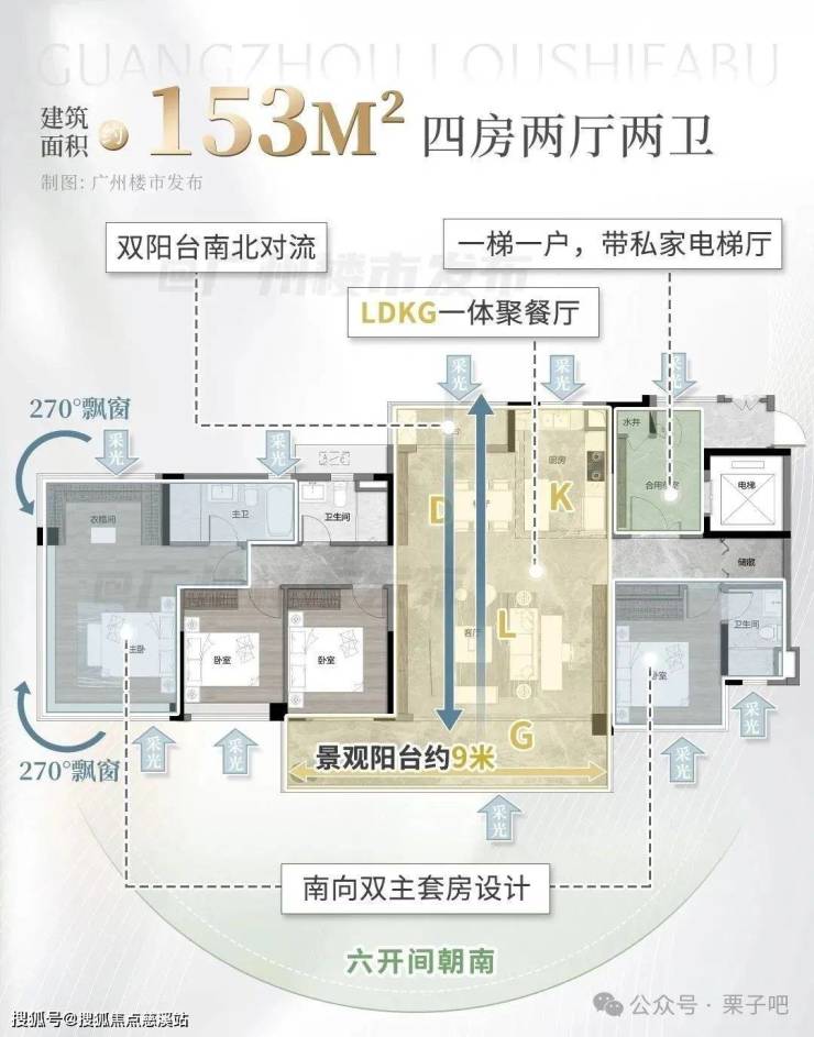 电梯入户+约3.3米层高+约6米巨幕方厅;超9米阳台私享高尔夫级视野。父母套房/主人套房全朝南,中西厨分区设计,满足高端宴客需求。