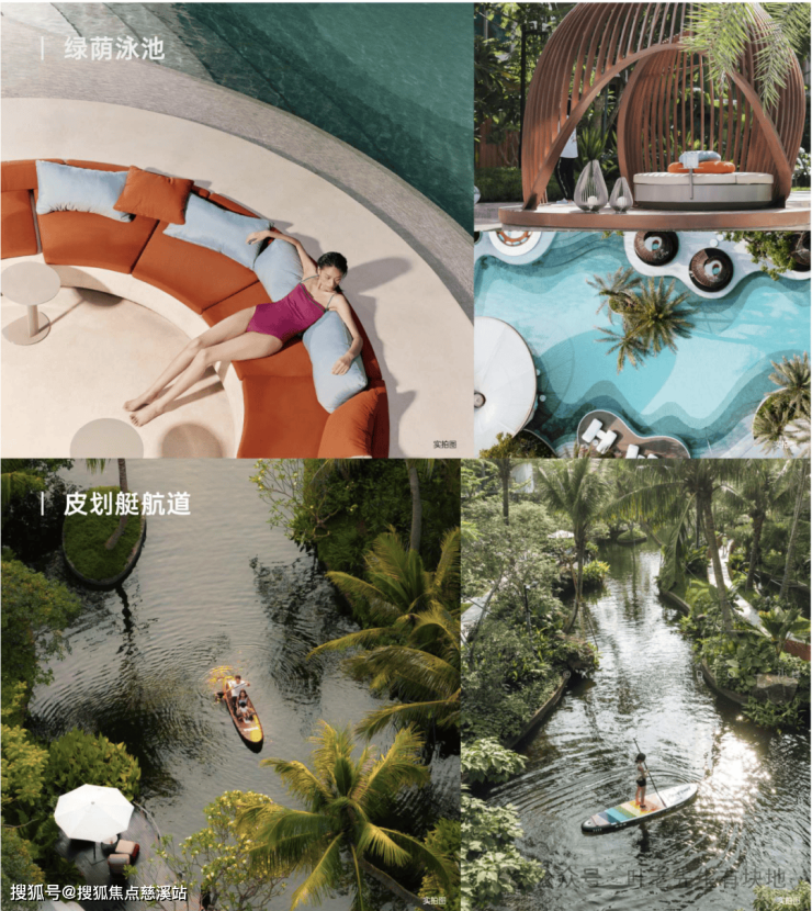 度假生活空间:配备绿荫泳池、皮划艇航道、水音亭等,提升业主生活品质。
