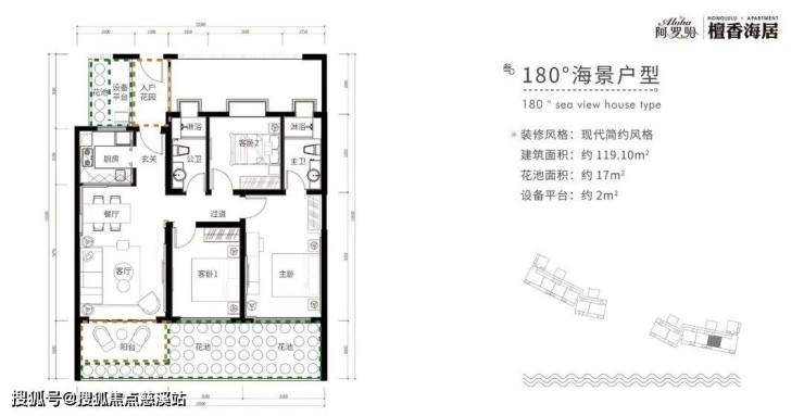 3号房,3房2卫:约119平送19平(总价753-928万)