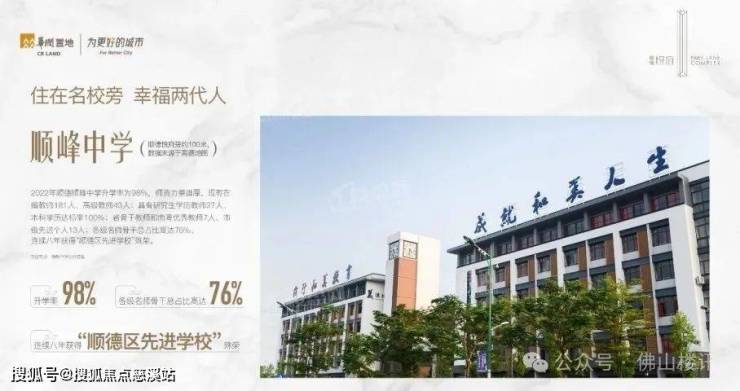 教育资源,项目配建的18班公办幼儿园已签约顺德区机关幼儿园,该园作为区属品牌园,师资团队由总园统一调配,硬件设施按省一级标准打造,预计2025年秋季正式开园。一路之隔的省一级顺峰小学、顺峰初级中学,以及2公里范围内的顺德第一中学,形成幼小初高全龄段教育闭环。