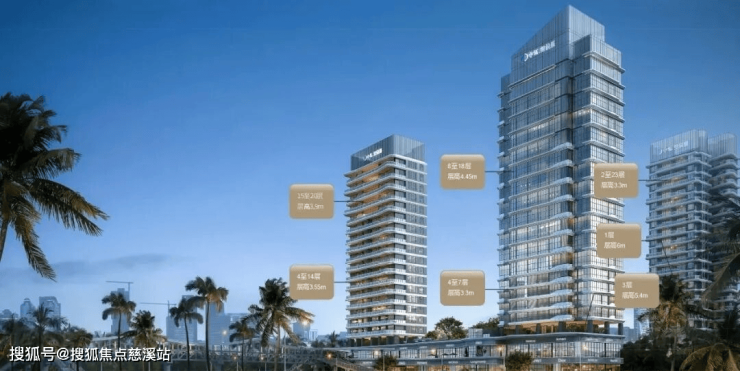 3栋23层层高约3.3m的品质江景奢居;1层2层为江畔沿街商业