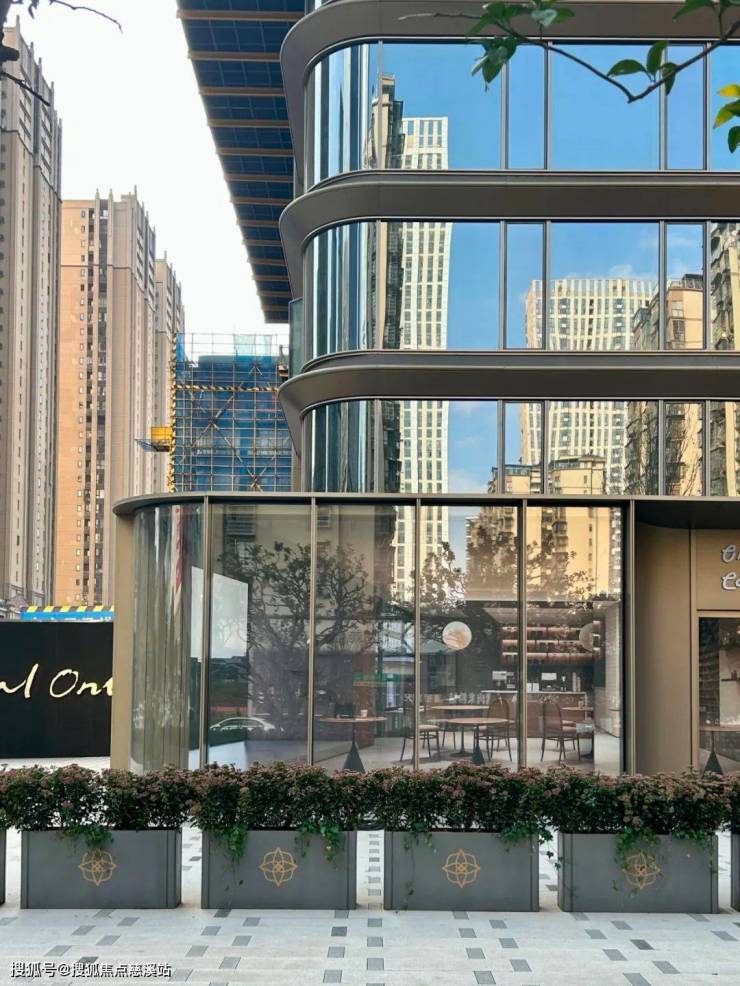 外立面采用香槟金铝板搭配270°弧形转角玻璃幕墙, 突破超高层住宅锐利直角的传统做法,且所有玻璃幕墙拐角处都做出弧度,打造少有的全景舱视野不仅赋予建筑以通透灵动的气质,更让每一道光线流畅穿梭,勾勒出无与伦比的流线美感。