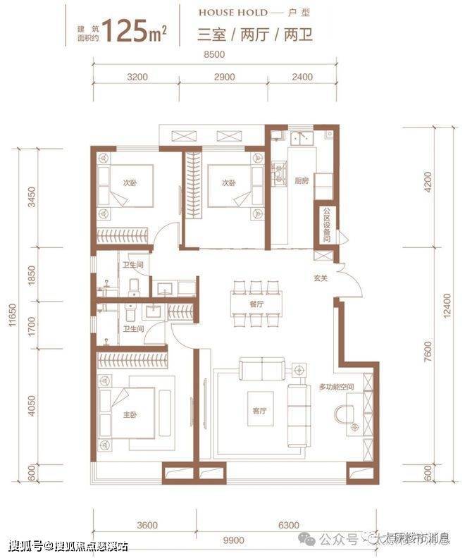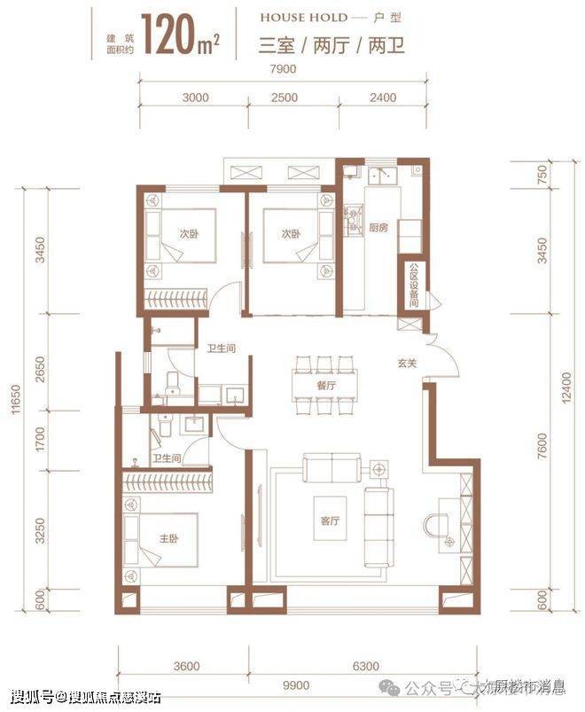 金地龙樾台一共有五个户型,分别是100平,105平的小三居,120平,125平的大三居,142平的四居。