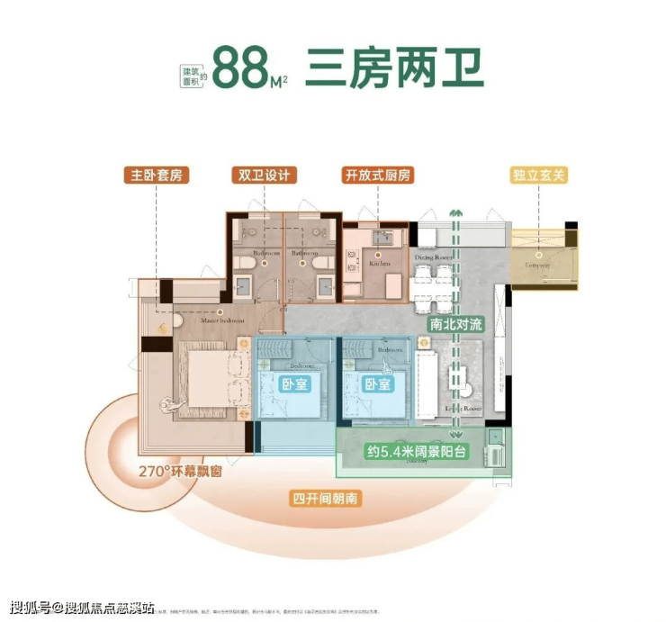 产品以主打刚需,有88㎡、98㎡、108㎡三至四房