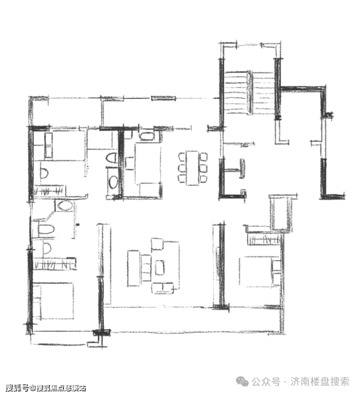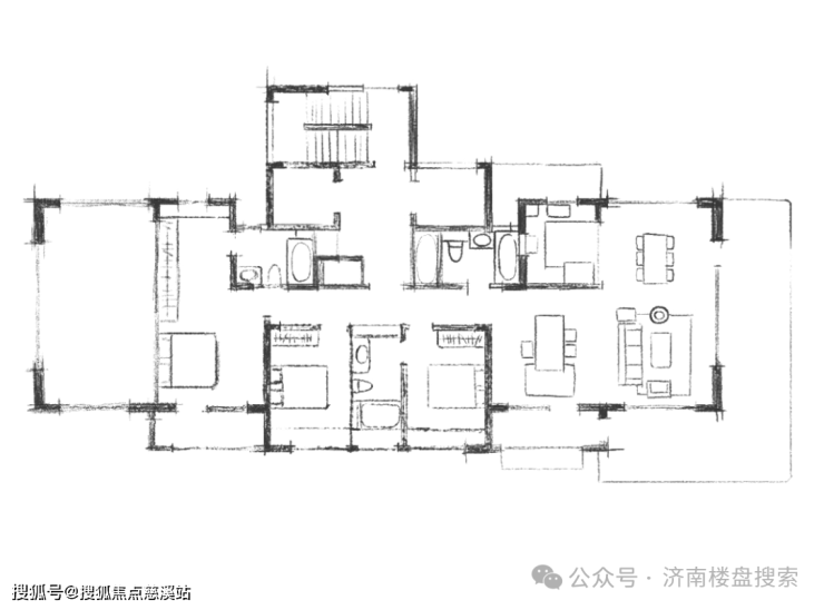 剧透一下户型,先来看一下设计大佬手绘的版本。