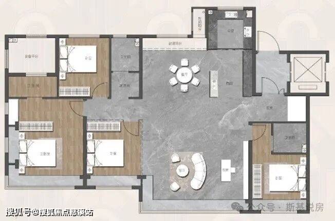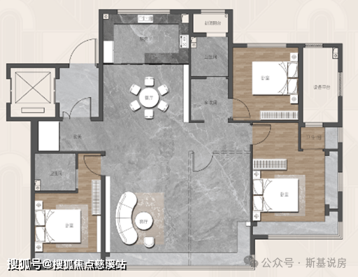 大平层143㎡户型,三卫设计,以前讲豪宅的时候,每间卧室都有卫生间才叫豪宅,卫生间越多,越往舒适化走,什么房子卫生间比较多的时候,也就意味着他不需要为功能空间发愁,他追求的就不单单是居住的功能性,已经超越这一层次,需求的是享受性。