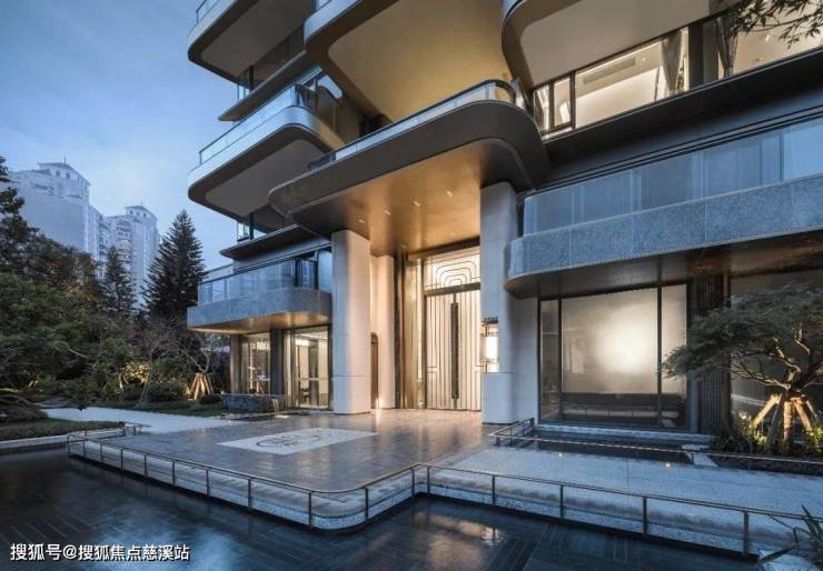 建筑美学:社区大门汲取宝格丽酒店的奢雅之风,打造约60米的门面,结合港湾式落客区,在层层递进之中,隔绝城市喧嚣。