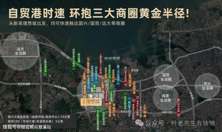 (4)休闲娱乐配套:西秀海滩,全长22公里海岸线,五源河体育场,海口近年来主要发展演唱会经济,国际知名大咖都在此举办演唱会。串联起西秀海滩公园、观海台、滨海骑行道、假日海滩、国家帆船帆板基地等网红打卡地。