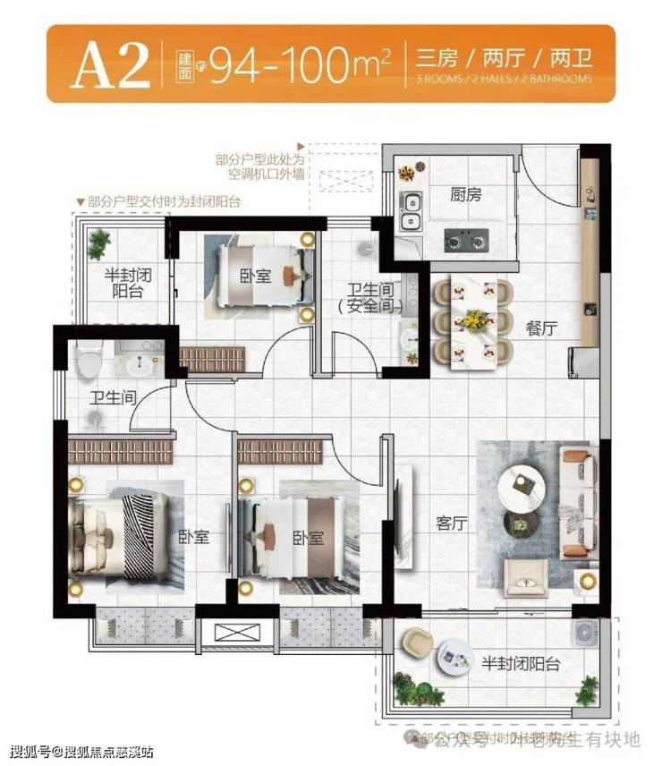 🏘【在售户型】:94㎡~110㎡三房两厅两卫