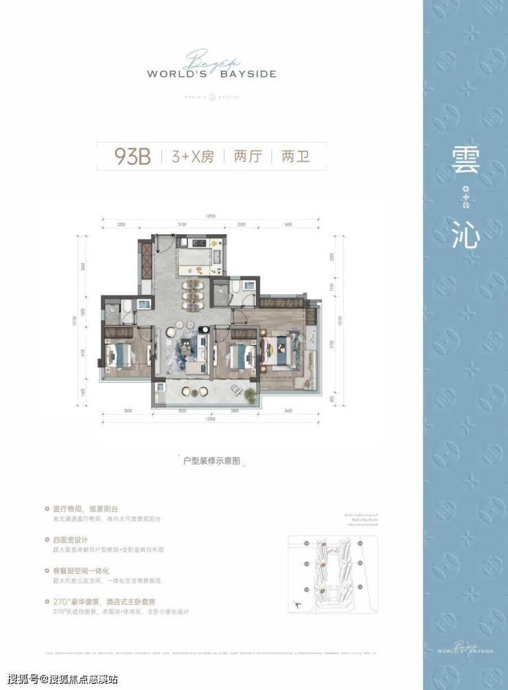 滨海润府II望雲,主力建面约93-120-139㎡的3+X/4+X/4+2X房。