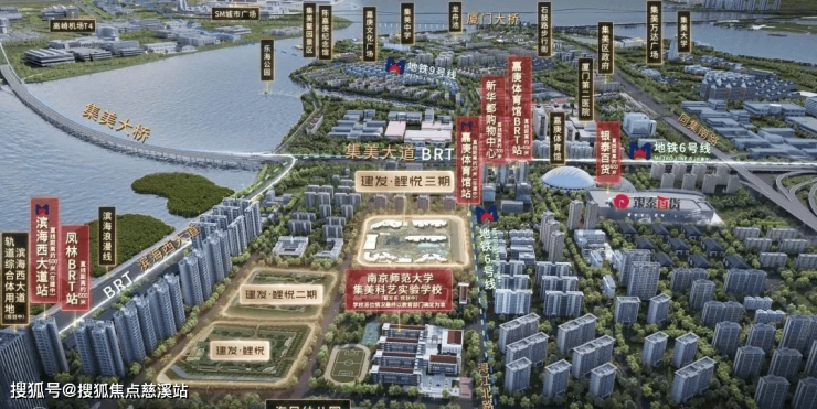 (1)交通动脉:双地铁(6号线在建、9号线规划)环绕,直线距离嘉庚体育馆站仅200米(三期),双BRT(凤林站、嘉庚体育馆站)交汇,10分钟直抵岛内核心区,形成“轨交+快速路”的立体路网。