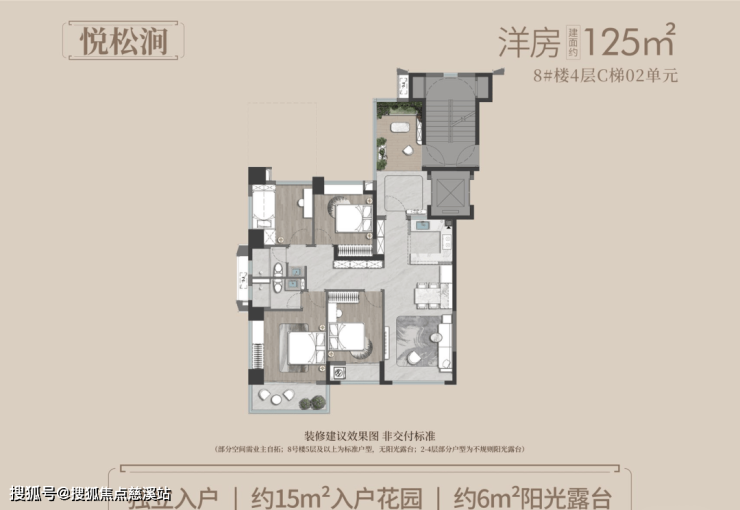 (1)洋房产品:通过入户花园(最大14㎡)、阳光露台(最大10㎡)等立体赠送,95㎡户型实际使用率达103%,实现三房两厅两卫的舒适布局,体验堪比传统110㎡户型;125㎡洋房创新设计“空中庭院+五房空间”,客厅面宽达5.6米,重构家庭社交场景。
