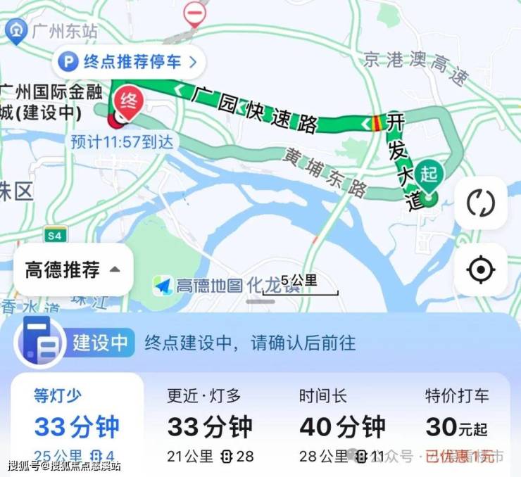 自驾去往珠江新城:出小区走黄埔东路转黄埔大道,全程24公里,不堵车情况下耗时42分钟左右。
