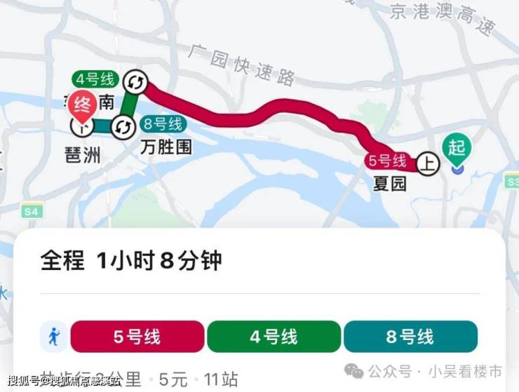项目虽说是5号线地铁直达珠江新城、金融城,但是在售的组团距离地铁都比较远,通过公共交通去往珠金琶各地基本都需要1小时左右,自驾的话不堵车50分钟内可以到达,但是上下班高峰期,通勤时间会和地铁出行时间差不多,建议还是地铁出行更省时省力。