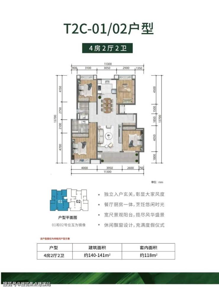 -全明户型,方正实用、公摊低,大主卧、超大景观阳台设计