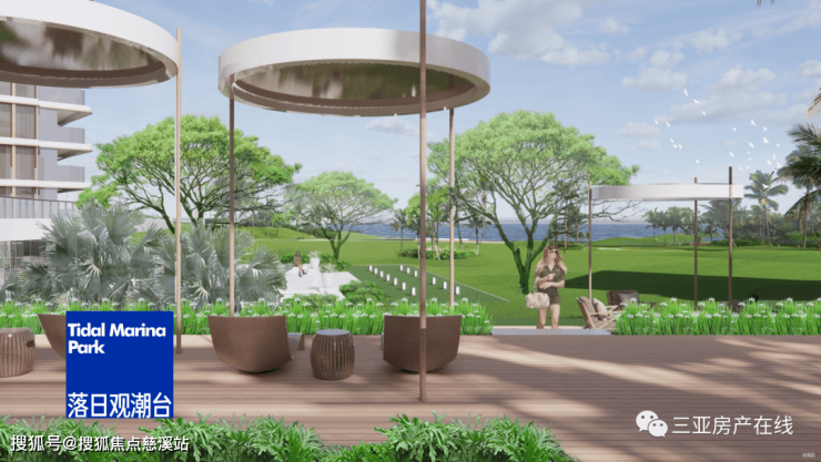 内设落日观潮台、晨曦听海廊、瑜伽草坪、乐活跑道、康养步道、景观会客厅、户外健身区等7大景观功能亮点,5重归家园林体系,筑造海湾生态公园住区。