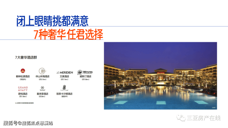 7座时尚奢华酒店 —— 朝林松源、君悦、伴山伴海、喜来登、艾美、威斯汀、丽思卡尔顿(建设中)