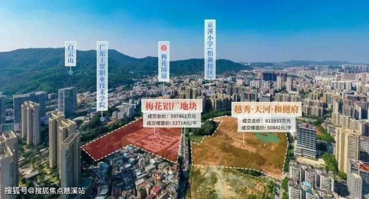 西派天河序这块地,就是之前的梅花铝厂地块,紧挨着越秀天河和樾府。