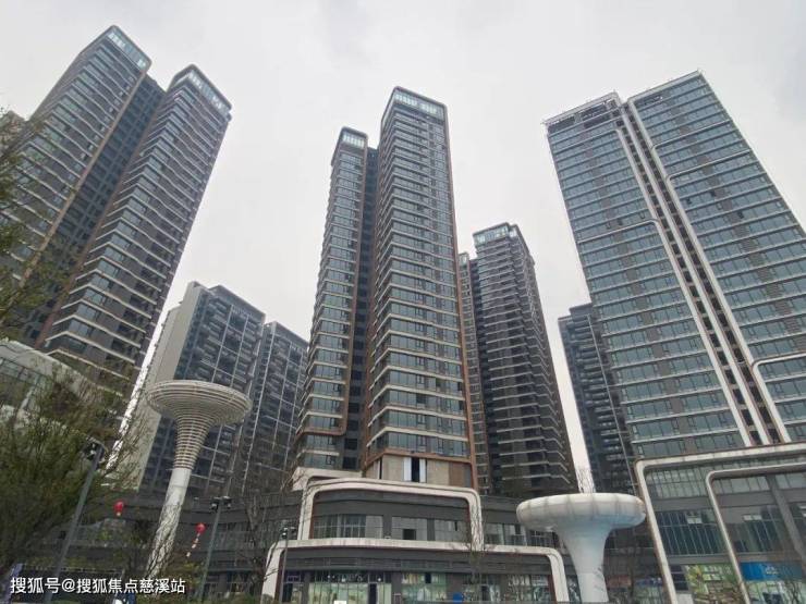 靠内的高层楼栋是深色仿石漆外立面,与大阳台玻璃构成了一种富有层次感的沉稳风格。
