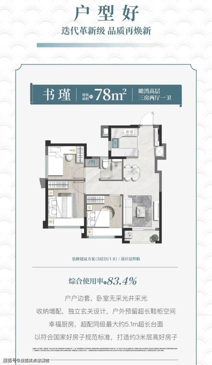 ·综合得房率83.4%+不计产权面积约6.8㎡