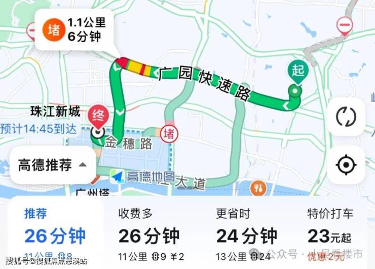 不得不说项目除了没地铁外,自驾是真方便,去往珠金琶都不超过半小时,最远的珠江新城也才11公里路程。