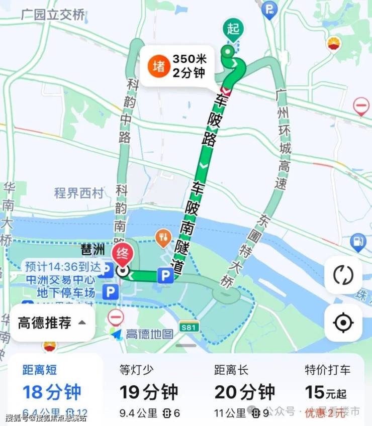 自驾去往琶洲:出小区上车陂路转到新港东路,全程6.4公里,耗时18分钟。