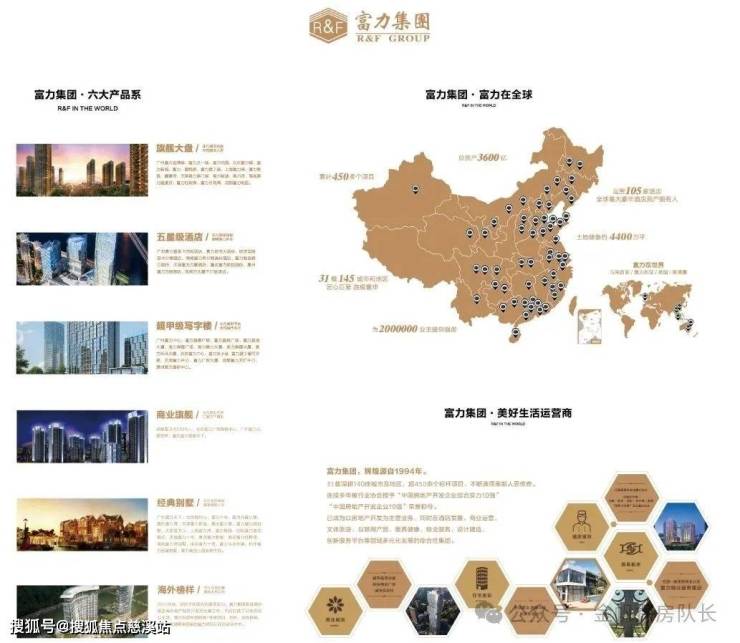 富力集团成立于1994年,总部位于广州,经过31年高速发展,已成为以房地产开发为主营业务,同时在酒店发展、商业运营、文体旅游、互联网产贸、医养健康、设计建造及创新服务平台等领域多元发展的综合性集团。2005年,富力于香港联交所主板上市(股票代码:2777),成为首家纳入恒生中国企业指数的内地房地产企业。