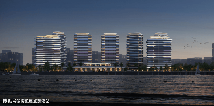 采用轻盈独特的滨水风格和海洋文化流体美学进行立面设计。以天空游轮为灵感,流畅的弧线设计立面采用幕墙设计+曲面玻璃,体现自由浪漫的滨海气息。
