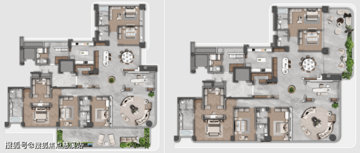 项目涵盖建面约190-430㎡面积段户型,均配备独立电梯厅。300㎡以上的户型额外设置了主人与后勤分离的双动线,并为主卧配置了独立的男女主人衣帽间及全屋独立卫生间。所有户型均注重实用功能,标配储藏间、家政间以及独立的中西厨空间。客厅面宽5.5至9.1米,尺度开阔,并附赠面积超过30㎡的私属空中花园。在建筑结构上采用框架剪力墙体系,确保主要居住空间无承重墙障碍,便于后期业主根据家庭结构调整房间格局,实现全生命周期场景。