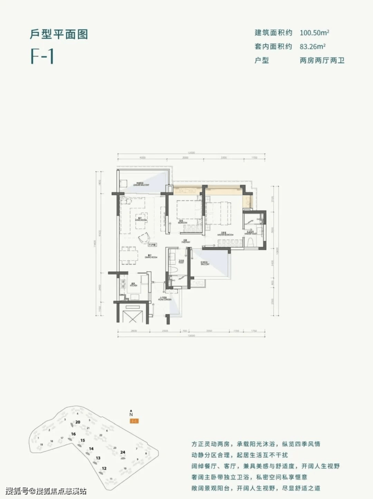 【建面100㎡2居】200-230万,2室2厅2卫, 西南朝向,楼栋分布于2期东汇14#