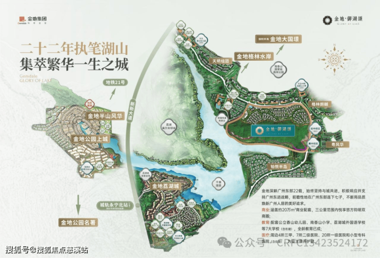 教育:配套香山幼儿园、加拿达国际双语幼儿园、中大附属荔湖城外语幼儿园、南香山小学,荔湖城外国语学校均已运营,项目内含自建初中(在建中)、高中(在建中)7大学校,12年全龄一站教育已成