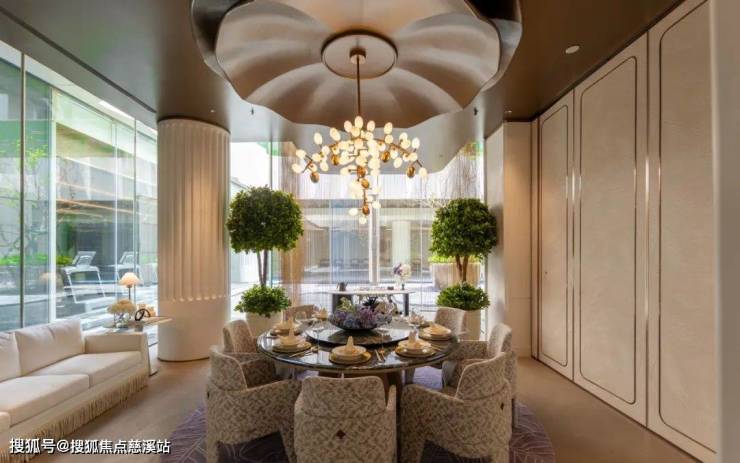 营销中心体验动线更像一场艺术巡礼:55米长的酒店式大门以奢石铺陈,用错落的植被和下层式庭院,将“度假风”搬进社区。该项目注重对传统龙图腾符号和在地文化的赓续与保护。在营销中心,大量应用龙鳞、游龙等人文元素,打造了游龙景墙、游龙旋转步梯、龙鳞灯饰等臻美装潢,在彰显国际艺术潮流的同时,展现出一种融合在地文化的人文内涵。