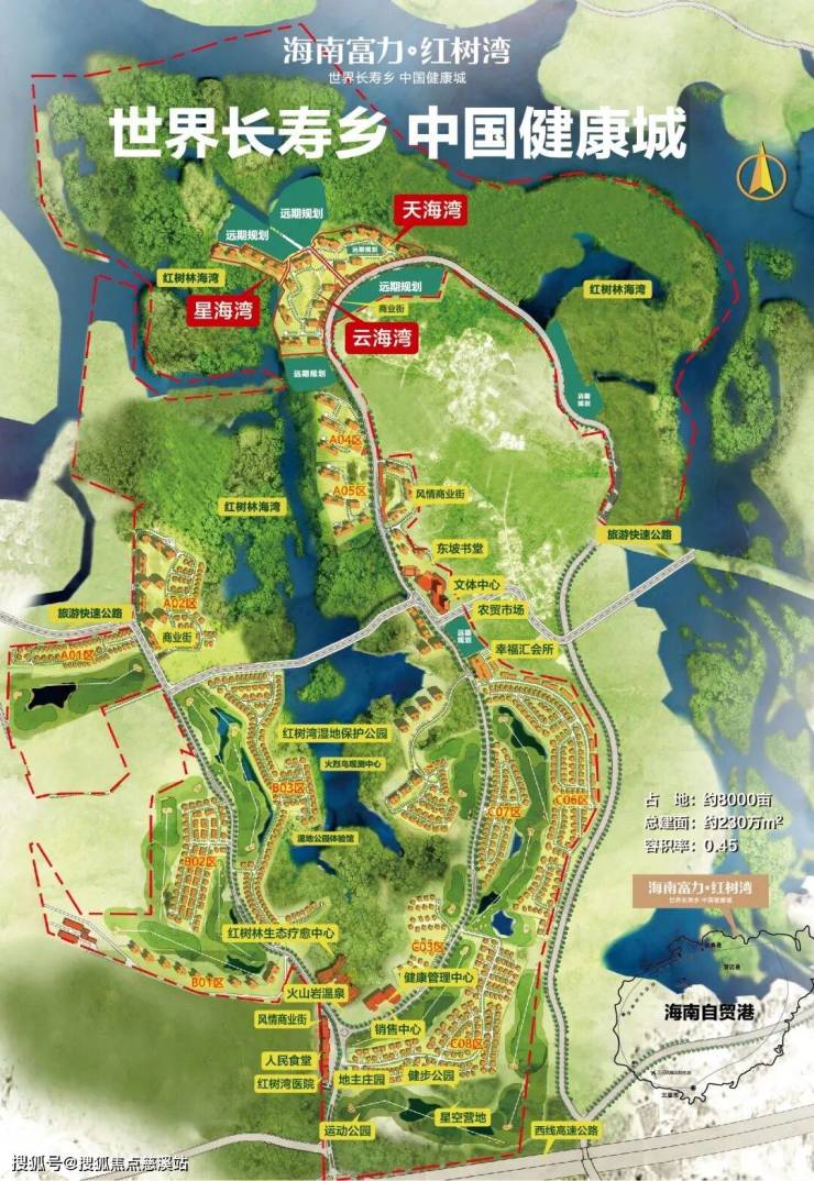 项目配建:红树林湿地公园、红树湾医院、健康管理中心、星空营地、文体中心、运动公园、红树林生态疗愈中心等20大配建;